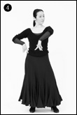 左足のつま先をつくのと同時に顔を左に向ける。次のコンパス(○6)で左ブラソを上げ、最初のコンパス(●1)から左右逆向きの動きを繰り返す。 |