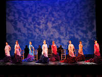 初出演の方たちとは思えないほどしっかりとした素晴らしい出来栄えでした。難しいフォーメーションにも稽古の段階からよく応えてくださり、おかげさまで入門としては非常にレベルの高いセビジャナスになったと思います。4番の位置間隔は完璧でした。普段の基本がしっかりしていると、踊りの振付に幅が出来るという非常に良い例でした。次の曲でも、余裕を持って取組めますようにがんばってください。 |