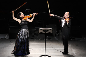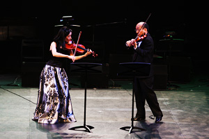 ヴァイオリン二重奏。度重なる共演によって培われた息のあった演奏。そして、それぞれの持ち味の音色を、互いに調和させ聴く人の心に迫りました。盛大で、晴れやかな名演奏は、スペインナヴァラ地方のホタ(民族舞踊)独得のおおらかリズムを脈々と感じさせてくれました。 |