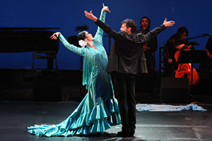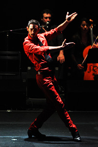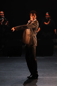 彼自身「以前は、きちんと決め事をやっていたけれども、最近は、ある程度のことをミュージシャン達と作り上げた後では、つくり込み過ぎないように気をつけている。舞台の上で自分から何が引き出せるのかを自然に逆らわずに楽しむようにしている」と言っていました。その言葉通り、本人さえも予想のつかない展開に対する驚きと閃きを楽しむ本物のフラメンコがそこにありました。 |