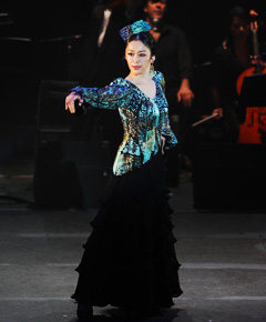 続いて「アランフェスの恋」。当初は、アランフェス協奏曲のみに真っ直ぐに取組むつもりでしたが、恩師である小松原先生のアドバイスもあり、ソレアをアレンジしアランフェス王宮での恋の物語を演じようと試みました。私としては、この作品準備にかけた時間が充分であったとは言えず、たくさんの課題が残りました。フアン・オガジャとのソレアは、これまで私が踊ってきた他のどのソレアより音に対して厳しく繊細で緊張感はピークでした。いつかまた別の形で、このアランフェスの静けさ、ドラマティックな展開に真正面から取組みたいと思いました。 |