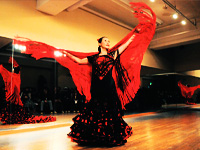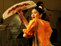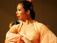 ソロとデュエットのバランスが良く飽きさせない構成が印象的でした。それぞれのソロをもっと踊りこんで、主張のある形でやれたとしたら、2人のパート、または交代するところが更に光ってきたのではないでしょうか。基本的なこと(マルカールやエスコビージャ、ブラソ、扇子使いなど)をもっと工夫して、チャーミングなグアヒーラを見せてください。 |