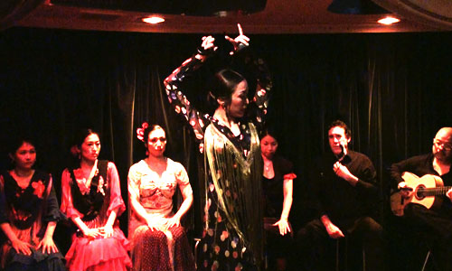 今回、珍しく久々にタブラオ形式のショーに出演させて頂きました。タブラオ形式といいましても、通常のフラメンコオンリーのクワドロではなく、クラシコとフラメンコを織り交ぜたアトラクシオンなどで、当スタジオならではのプログラムをご披露させて頂きました。1部・2部ともに最後まで温かい拍手とハレオを下さり、皆様と一体感を持って終えることができたライブとなりました。 |