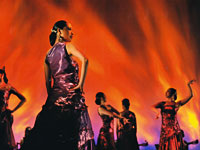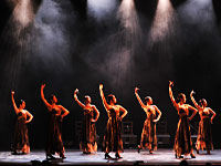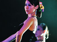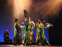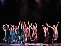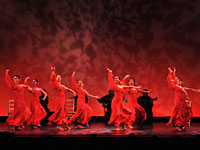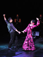 ドラマチックな始まり。マントン使いにも落ち着きが感じられ、同じ出演者が踊ったカラコレスとは、雰囲気も全く違い、それぞれの曲のイメージの違いを見事に表現していました。歌に導かれるフラメンコというものを感じていただければと思います。 |
