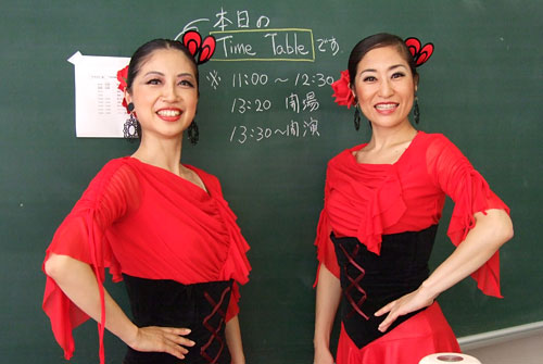 家庭科室や理科室などを楽屋として使わせていただき、お昼の時間帯になると給食のおいしい匂いが漂い懐かしさを感じました。