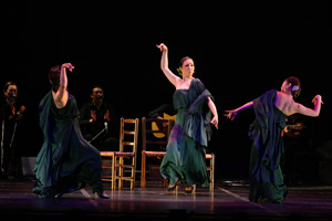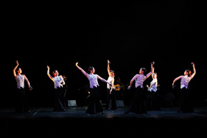 難しい掛け合いへの挑戦。ブレリアのリズムの素晴らしさと掛け合いの面白さを味わっていただければと思いました。真暗な舞台に黄色とピスタチオ色が照明に美しく浮かび、他の演目にはない大人っぽい空間が生まれました。全体のテンポは、若干ゆっくりしたものでしたが、いつか本来のブレリアのハイスピードで踊って欲しいです。身体を引き上げた状態をキープし、リズムに遅れないよう努力をして下さい。途中、リズムがばらついたところがありましたが、ミュージシャンの絶妙なフォローで、乗り切る事ができました。 |
