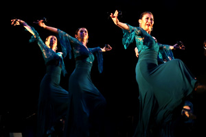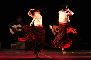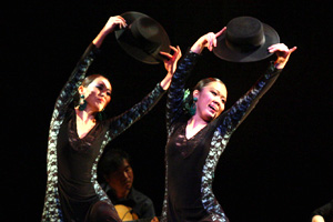 たった4人での挑戦でしたが、コンパス、ポーズ、ブラソの美しさが際立っていました。また、入門者とは思えない程の表情の豊かさと落ち着きを感じました。将来がとても楽しみな4人のアレグリアス。今後は、フラメンコの力強さなども表現できるよう幅を広げていって下さい。 |