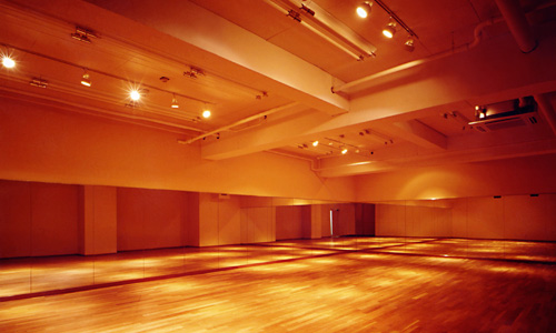 約35坪の広々としたスタジオは、2方向の壁全面に大きな鏡が設置され、あらゆる角度から細かい動きのチェックができるようになっています。フロアは脚に必要以上の負担がかからないようにとの配慮から、国立代々木オリンピック記念センターの体育館(柔道のナショナルチーム使用)の床と同じ設計を採用。繊細なしなやかさを持つこの床は、脚だけではなく体全体にも優しく、サパテアード(足踏み)の衝撃を和らげてくれます。また、2種類の照明をふんだんに使ったライティング設備や、4方向からのスタジオ専用サウンドシステムも充実。舞台のリハーサルから、スタジオコンサートまで幅広く活用しています。女性専用の更衣室も完備しており、レッスンされる方が気持ちよく稽古できるよう、衛生面にも十分気をつかっています。 |