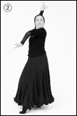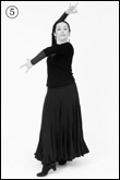 右ブラソを上げ、左ブラソはひじを張って軽く曲げて左足ゴルペ。背中はややそりぎみにして、目線はやや上に。手首は、最初から最後までゆっくりと回し続ける。 |