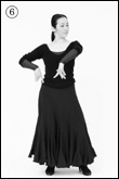 左足のつま先をつくのと同時に顔を左に向ける。次のコンパス(○6)で左ブラソを上げ、最初のコンパス(●1)から左右逆向きの動きを繰り返す。 |